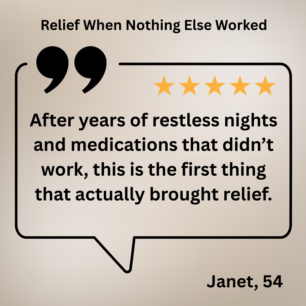 "My husband can finally sleep through the night without me getting up every 2 hours. Game changer for both of us." — Patricia W.